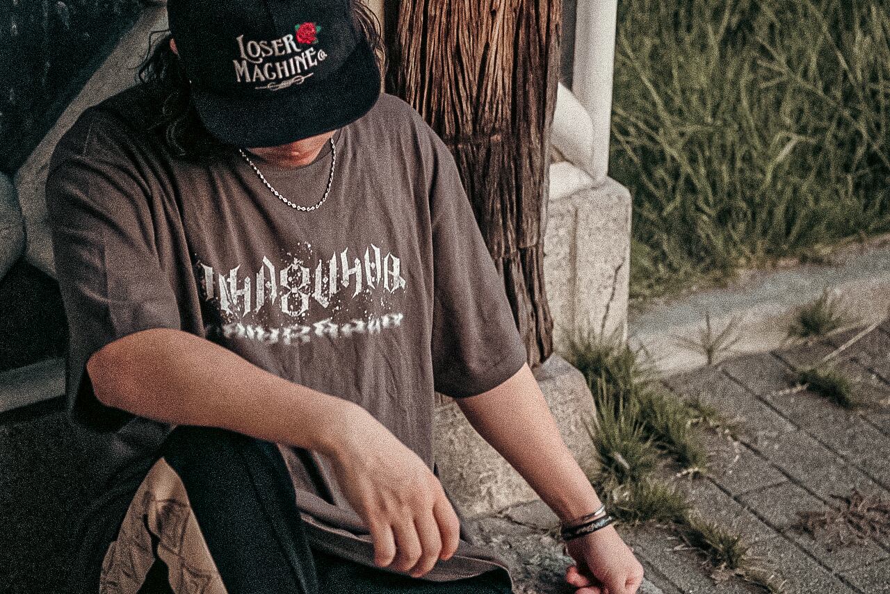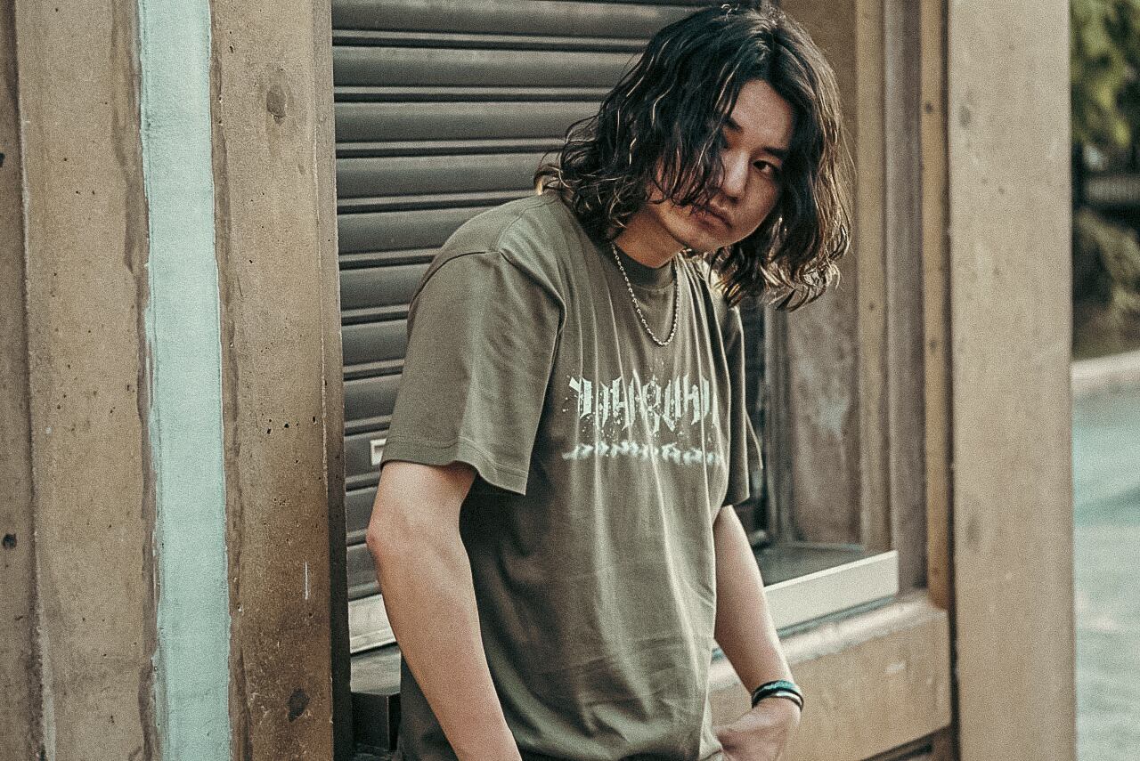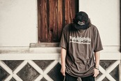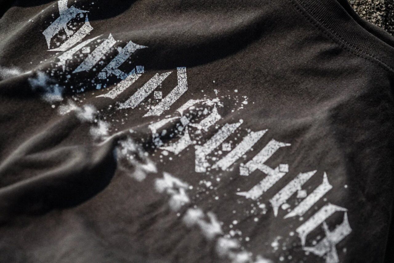 「HAYABUSAQ」の文字をアンビグラム(異なる方向から読み取れるようにした文字)にデザインしたロゴを、センターにシルクスクリーンプリントしたT-Shirtsです。